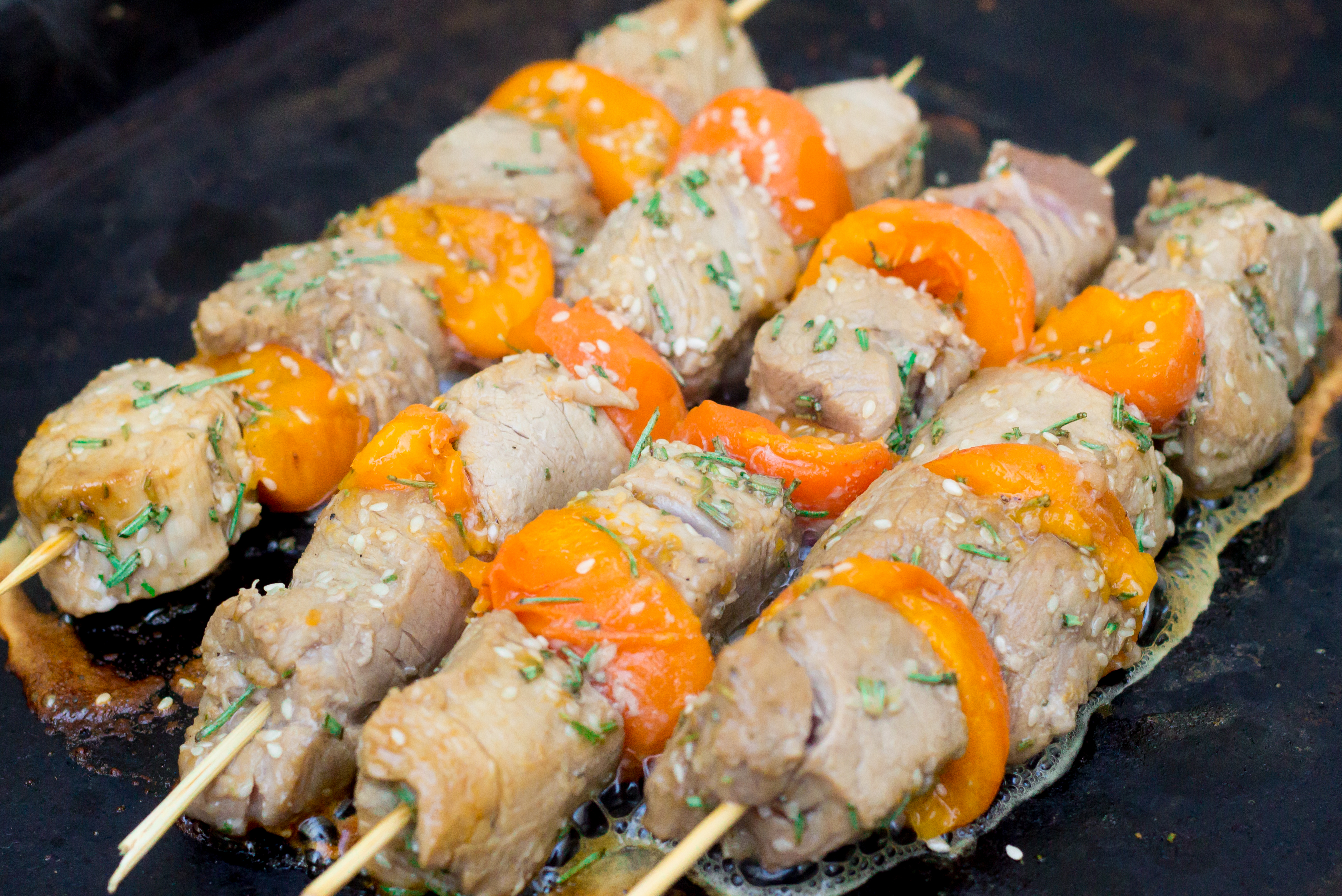 Placer en alternance le porc et les abricots sur une brochette en bois.