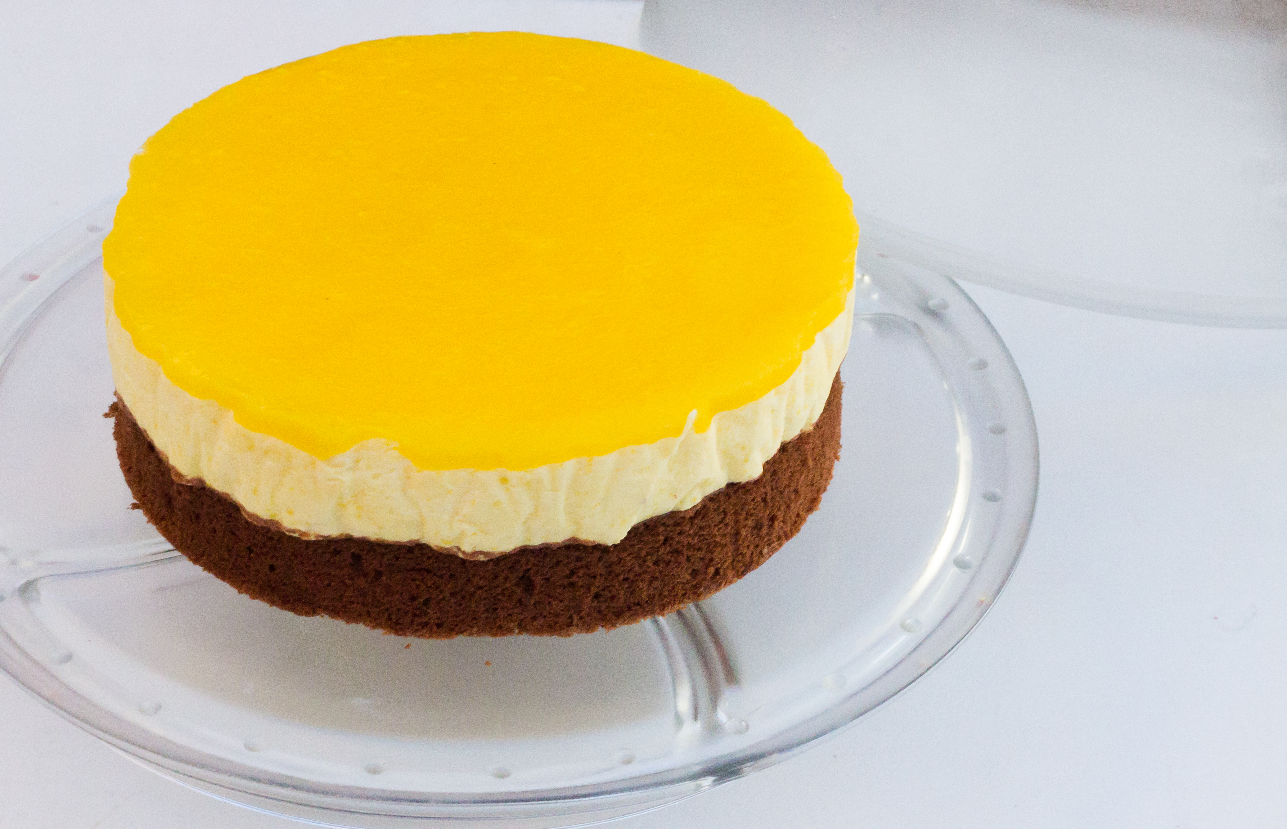 Dans une casserole à feu doux mettre la moitié du jus avec le sucre jusqu’à intégration. Ajouter la gélatine jusqu’à intégration et retirer du feu. Ajouter le reste du jus de mangue.