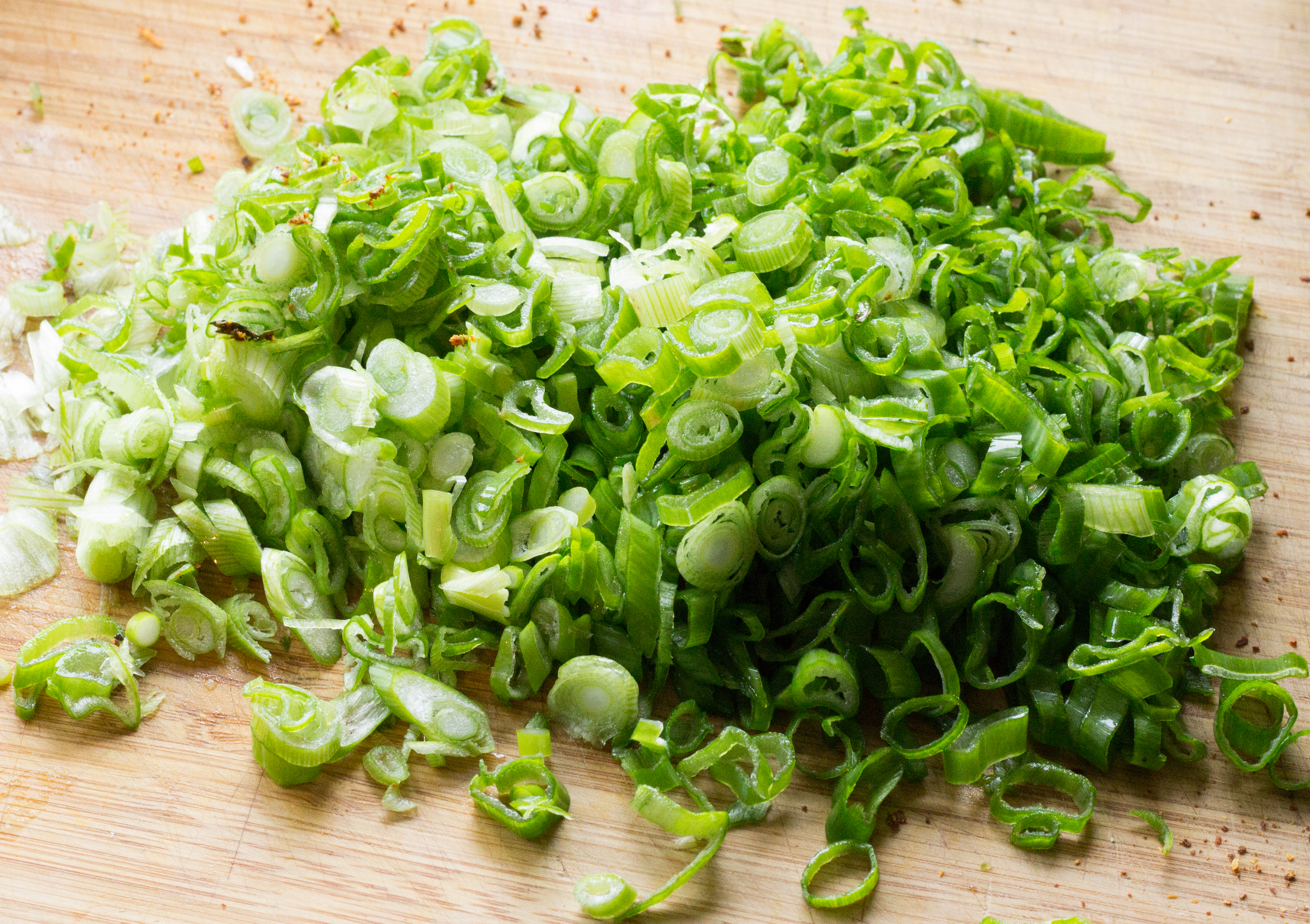 Couper la queue et les feuilles très verte des oignons ciboules et émincer finement.