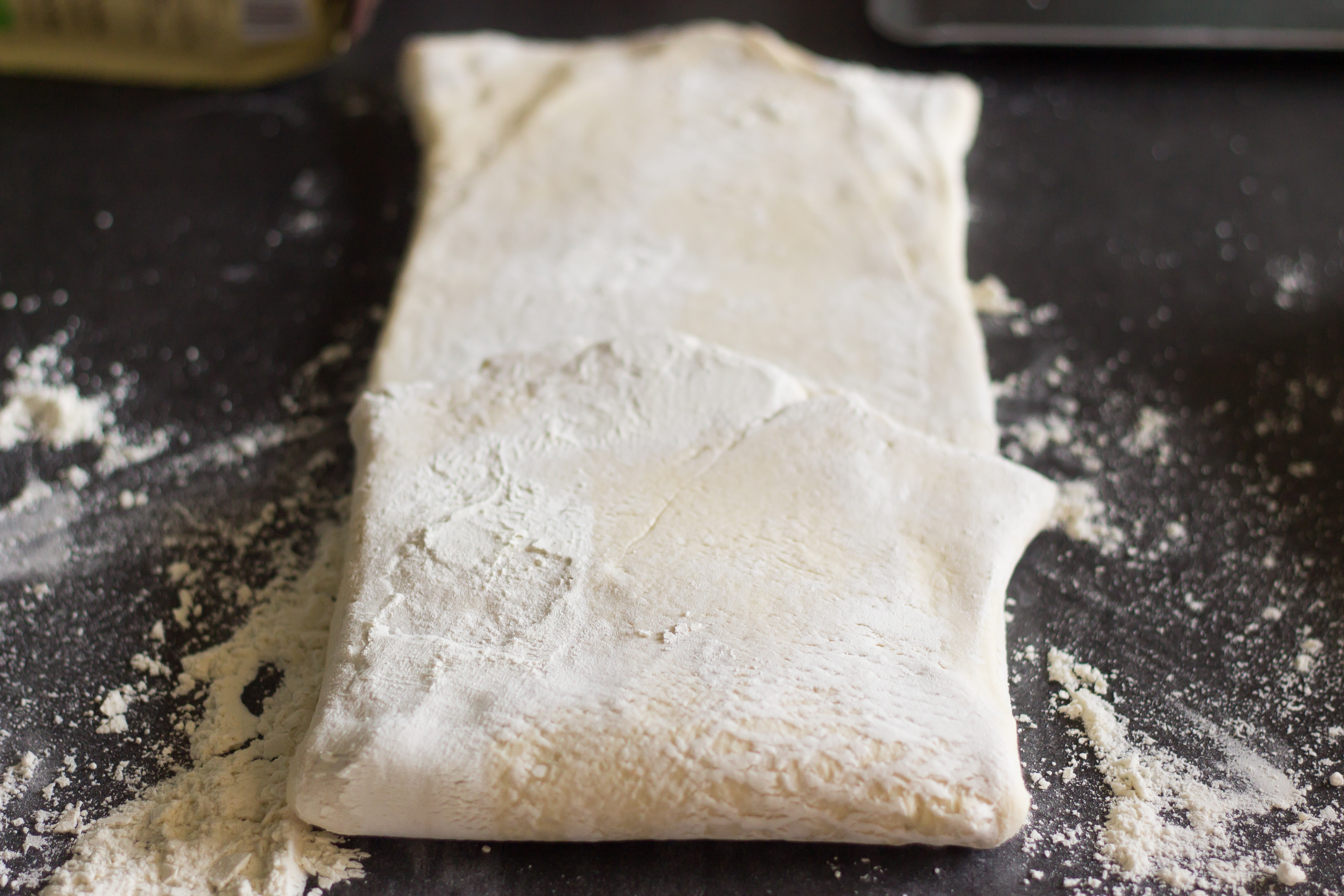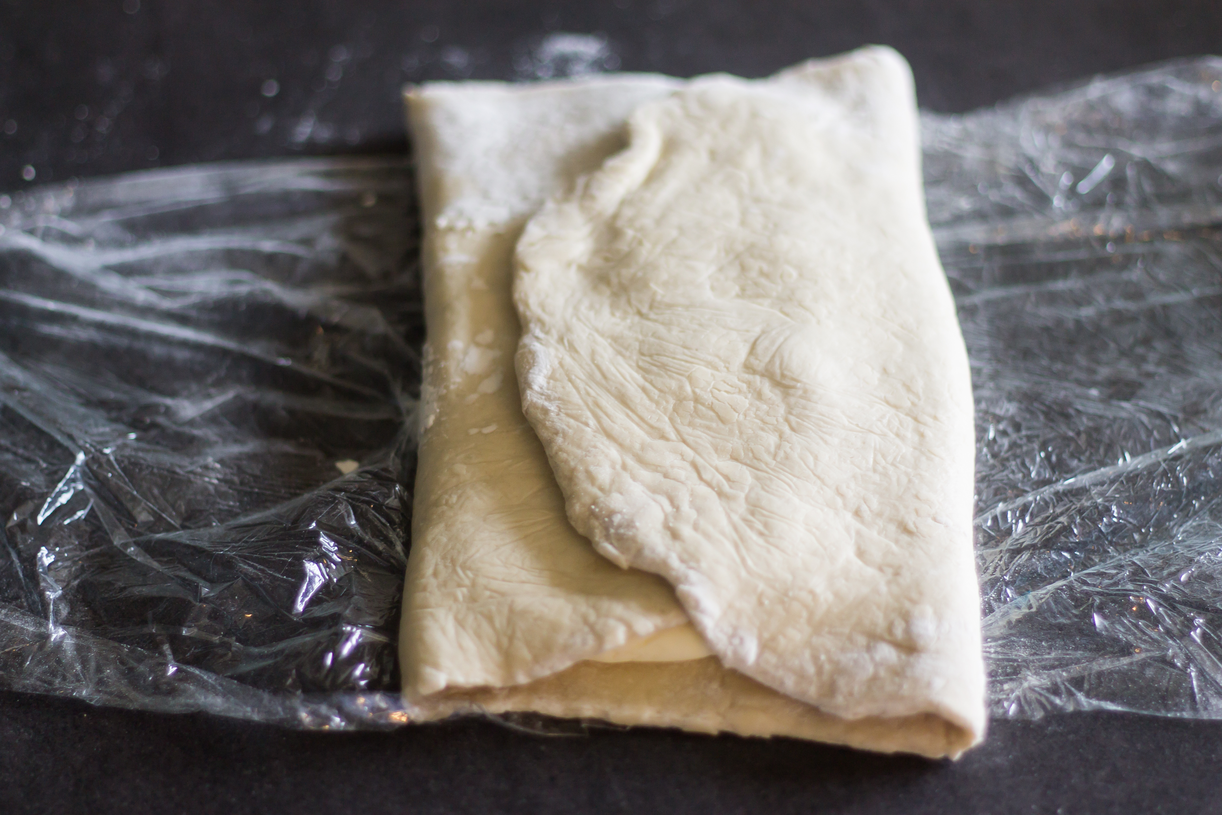 Etape 5 : Replier la pâte en 3 et le remettre dans une papier étirable au frais pendant 30 minutes.