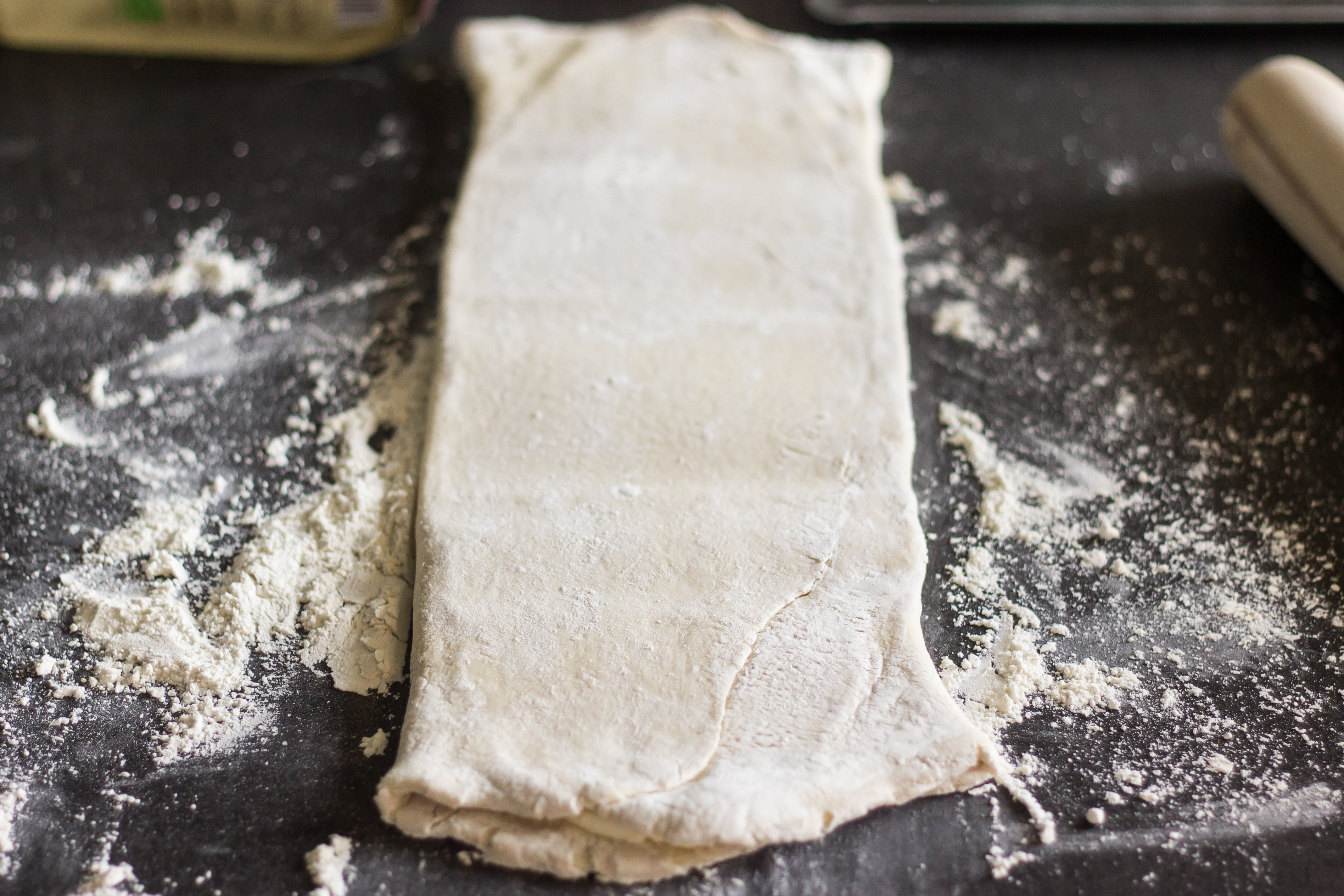 Etape 4 : Etaler la pâte comme sur la photo ci après en gardant la pliure vers soi.