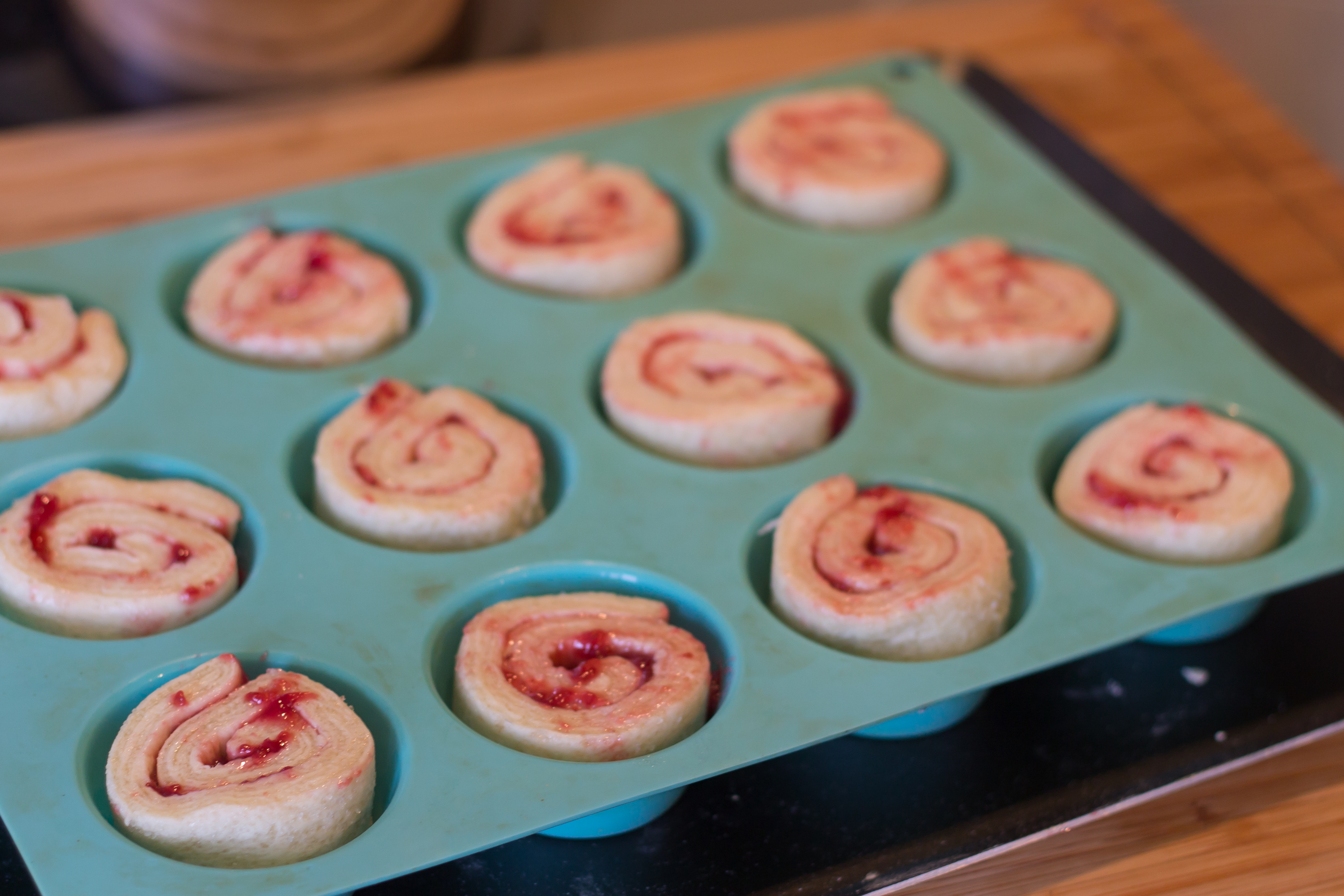 Etape 8 : Couper des tronçons de 3 cm et les disposer dans un moule à muffins