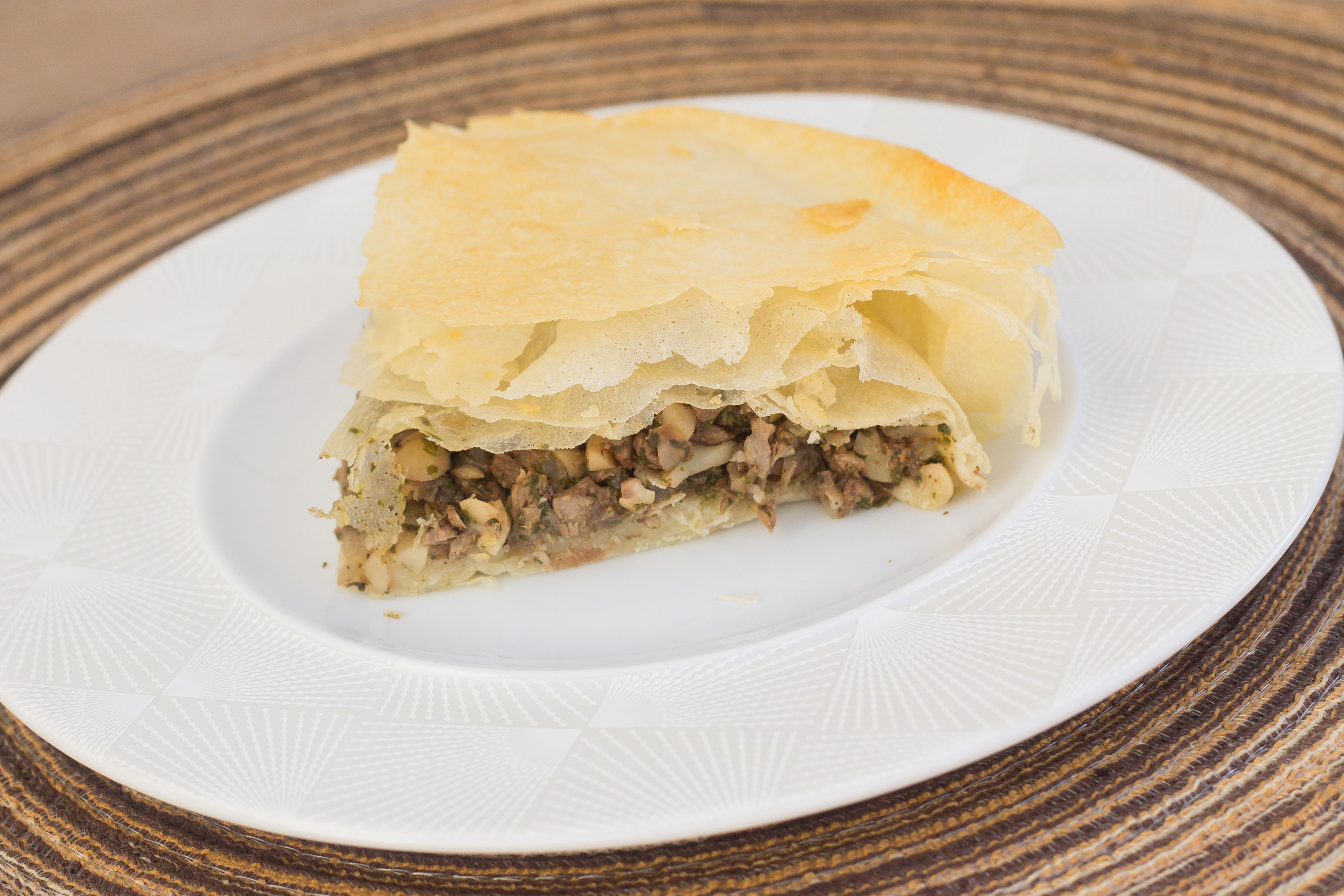 Une recette orientale qui peut en appeler pleins d’autres, j’appelle ça un plat fourre tout comme les quiches. Je n’ai pas de recette prédéfinie de la quiche, en fait je met tout ce qui reste dans mon frigo pour ne rien gâcher. Je tente parfois des associations osées en fonction des restes du moment. Le pastilla ça peut être un peu pareil. Ici je fais cuire la viande 1 heure mais vous pouvez très bien utiliser des restes de poulet, de poisson, etc.