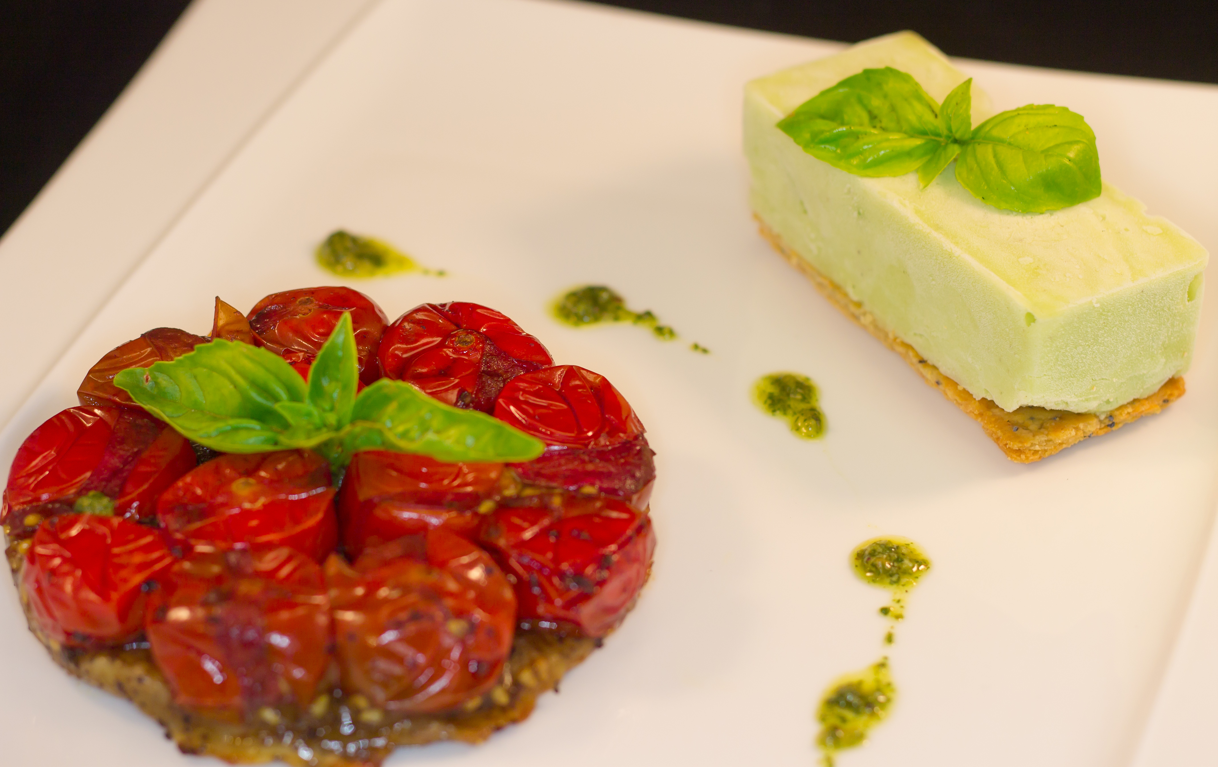 Tatin tomates cerises et glace au basilic