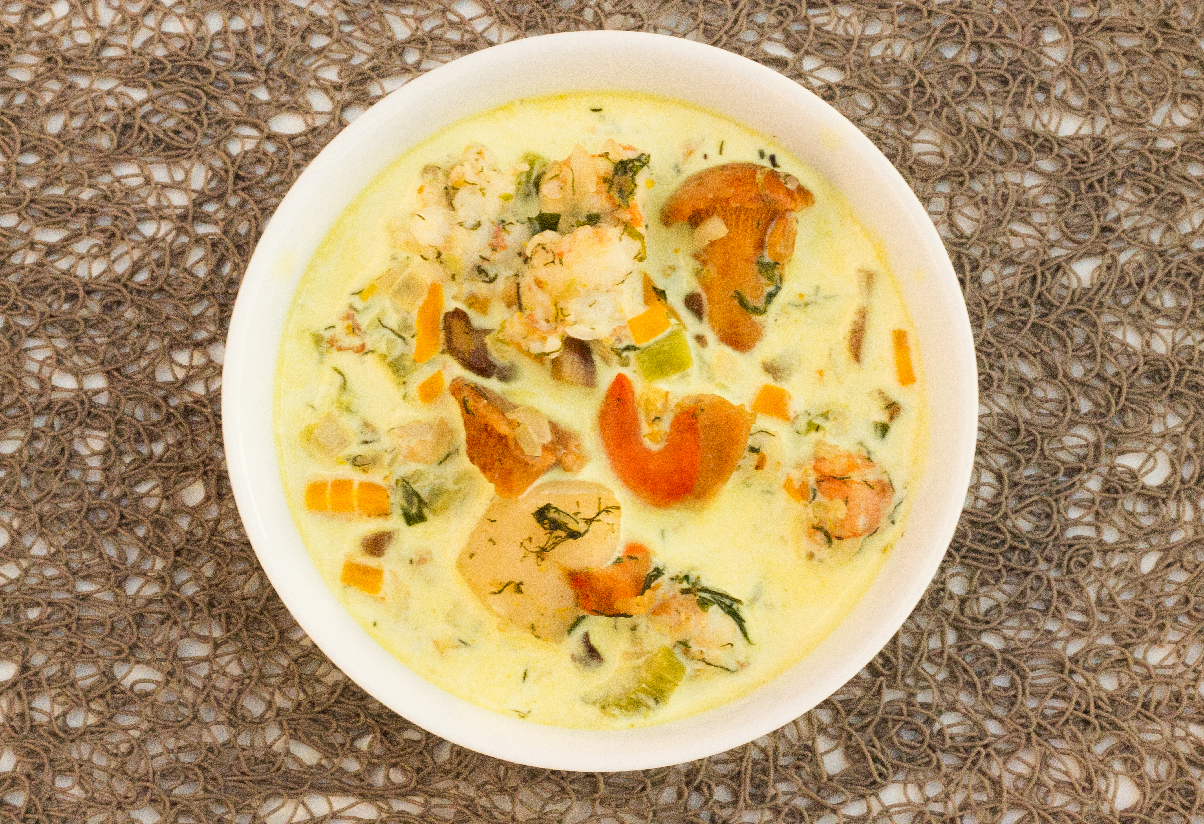 Cassolette de saint jacques et langoustines aux girolles