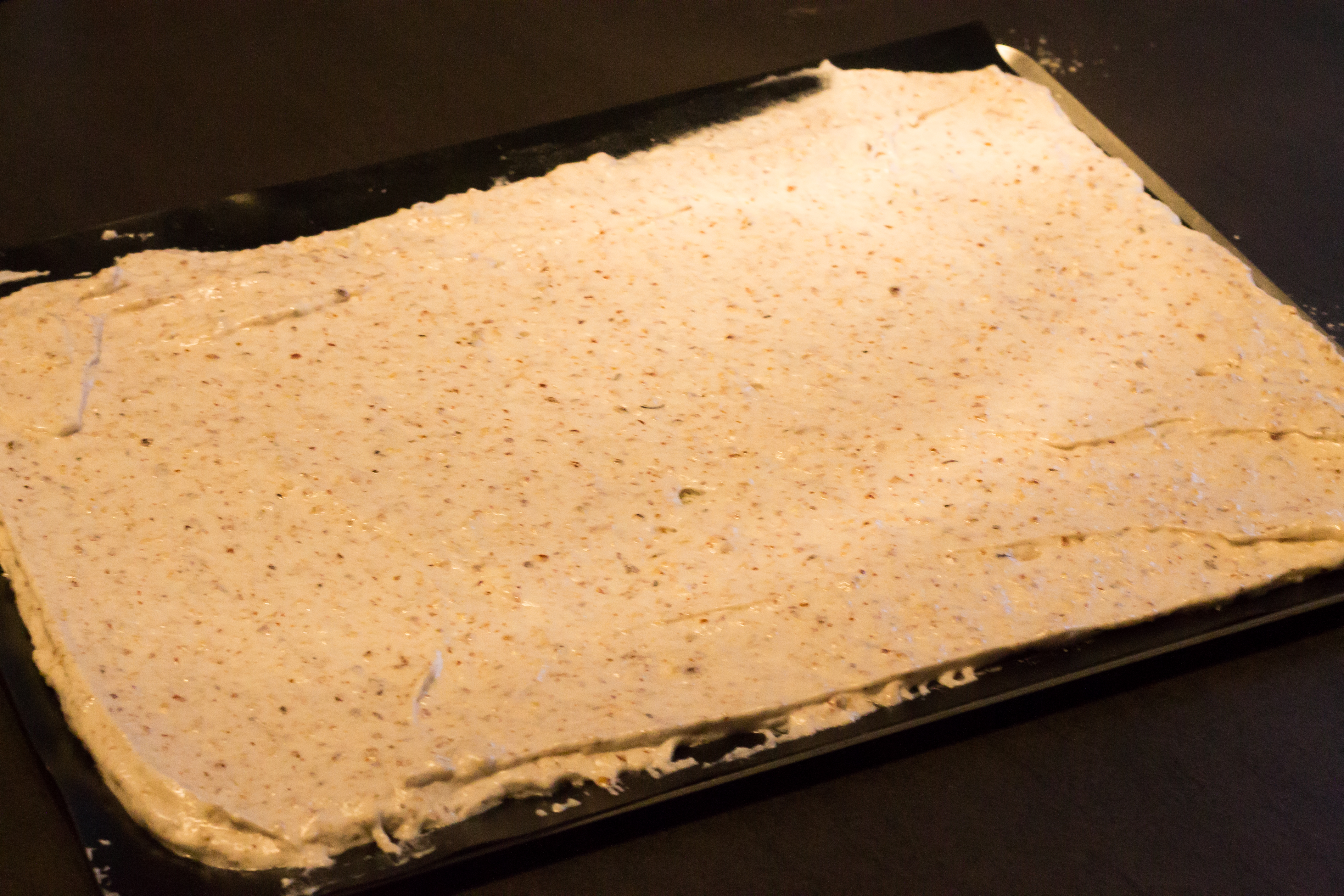 Etaler sur une plaque de cuisson perforée recouverte d’une toile de cuisson ou d’un papier sulfurisé.