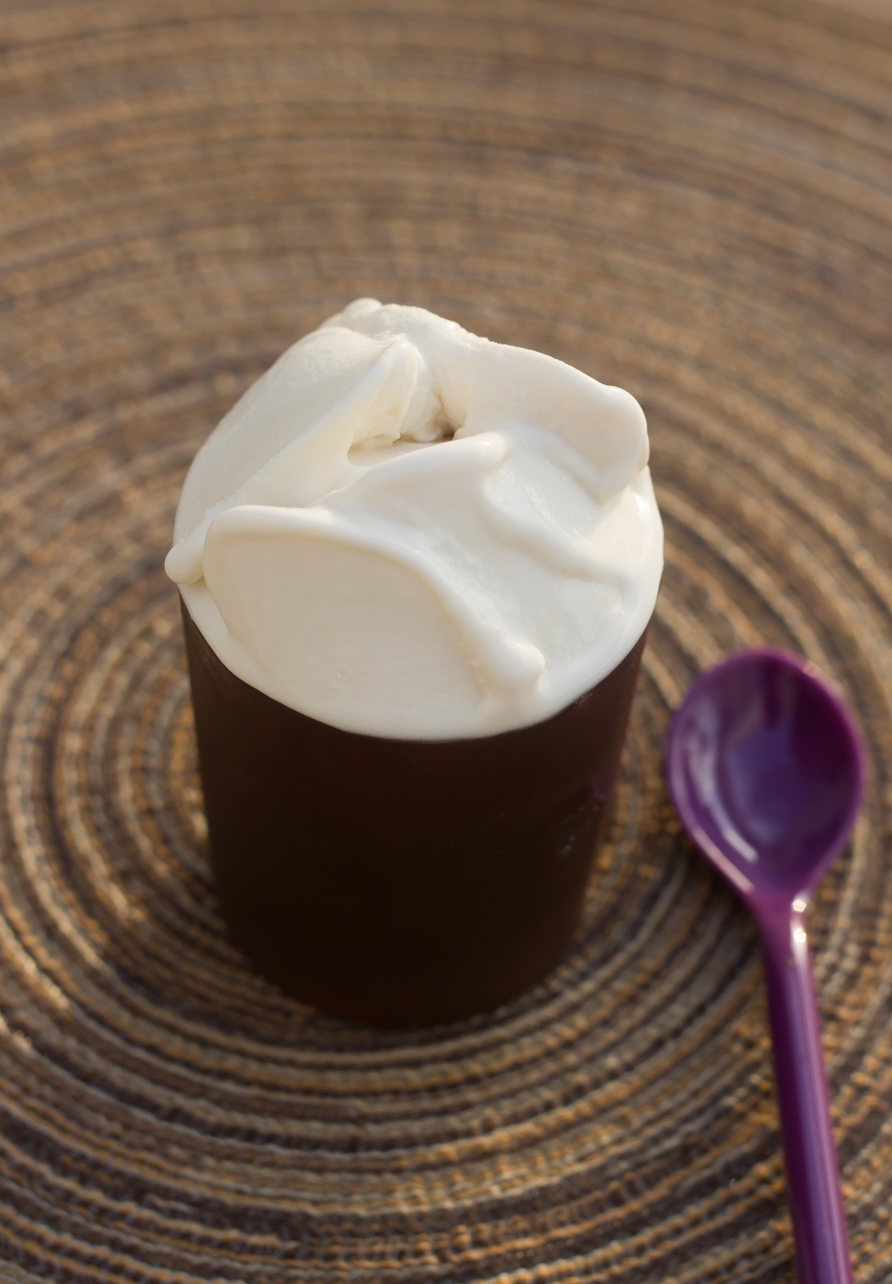 Un ptit vent de fraîcheur après quelques jours brillants et réchauffants pour notre épiderme mais aussi notre moral. Il n’en fallait pas plus pour ressortir ma sorbetière. Cette recette sonne comme une douceur glacée en fin de repas. Pour aller encore plus loin et titiller le fameux orgasme culinaire j’imagine un peu de croquant sur le dessus : de la crêpe dentelle grossièrement cassé par exemple. Comme toutes les glaces maison, l’idéal pour les consommer c’est à la sortie de la sorbetière, vous aurez ce crémeux incroyable…