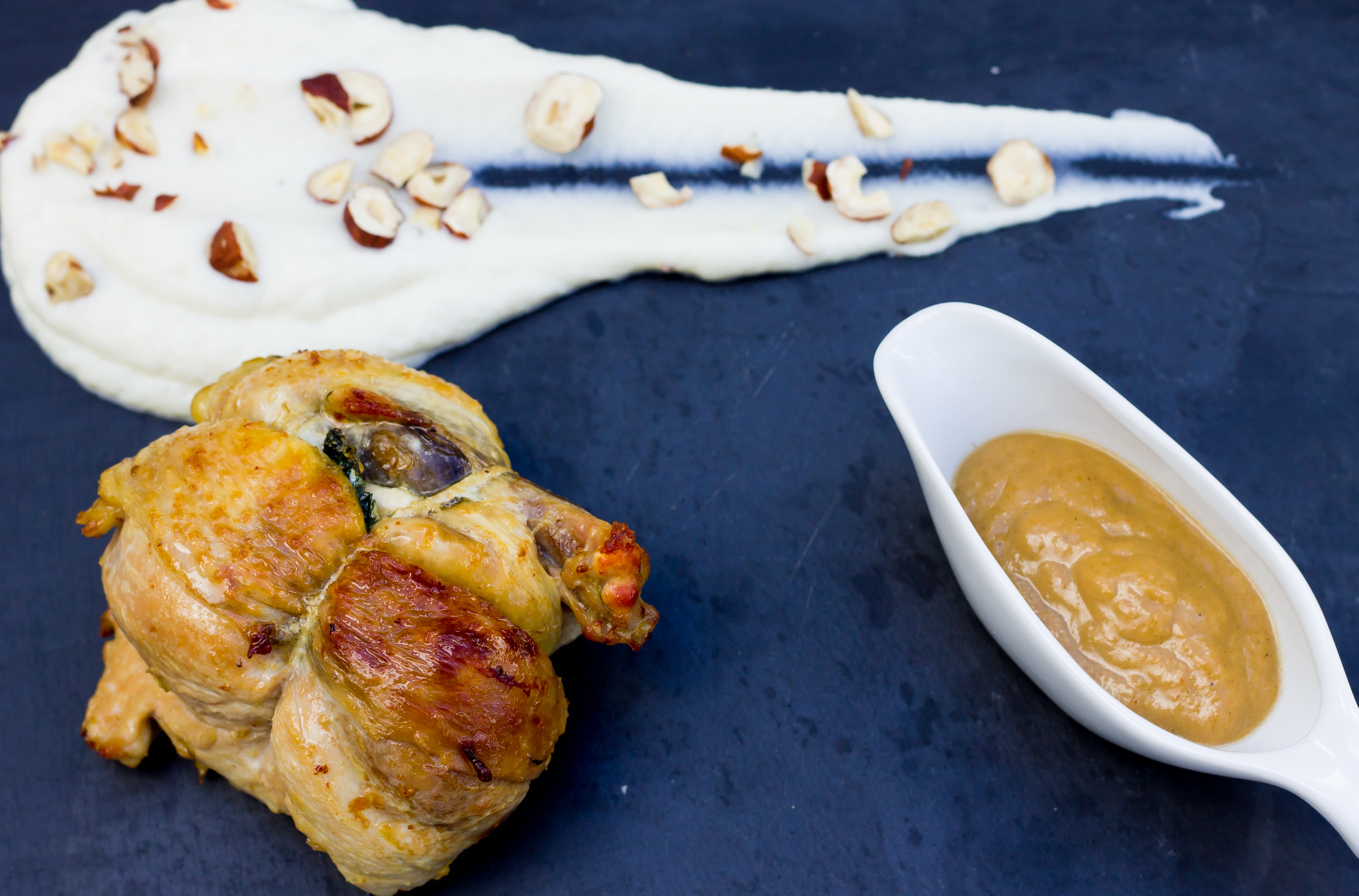 Réchauffer la sauce et le purée et dresser sur l’assiette.