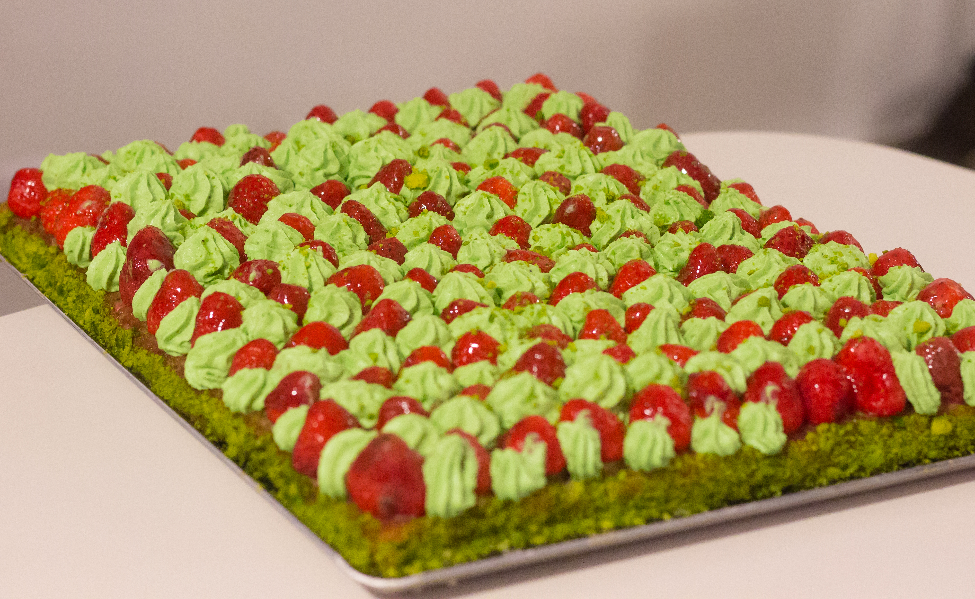 Au maximum 2 heures avant de le servir, avec la poche à douille rempli de crème à la pistache, remplir les cavités restantes.